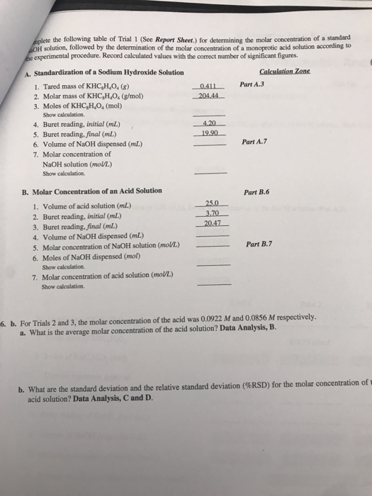 Solved 6 A Complete The Following Table Of Trial 1 See Chegg Com