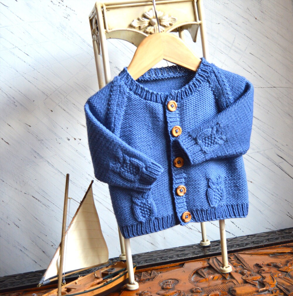 Knitting Pattern Raglan Sleeve Cardigan With Little Owls Etsy